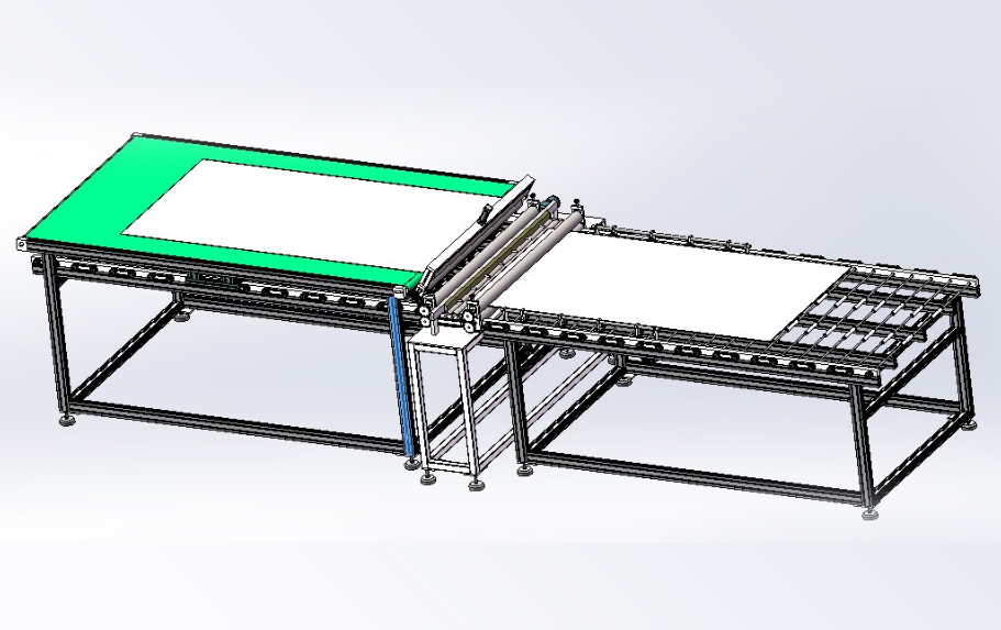 本生產(chǎn)線依據(jù)用戶需求,進(jìn)行“量身”設(shè)計(jì),由層壓前鋪設(shè)傳輸線;通過(guò)不同機(jī)構(gòu)的傳輸、轉(zhuǎn)運(yùn)、變向、定位、旋轉(zhuǎn)/釋放實(shí)現(xiàn)組件封裝過(guò)程的流水化操作,可提高單位組件生產(chǎn)效率。